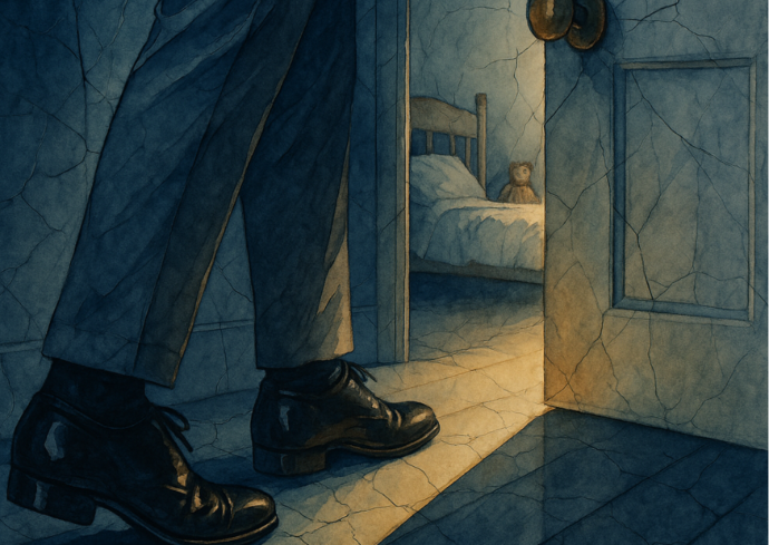Może tym razem usłyszy, jak klamka się obraca, drzwi cicho skrzypią, a ojciec wchodzi i mówi: „Poczytam ci przed snem.”