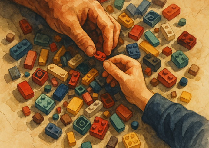 Syn siedział w salonie, pochylony nad klockami Lego. Nawet nie zauważył, że ojciec wszedł.