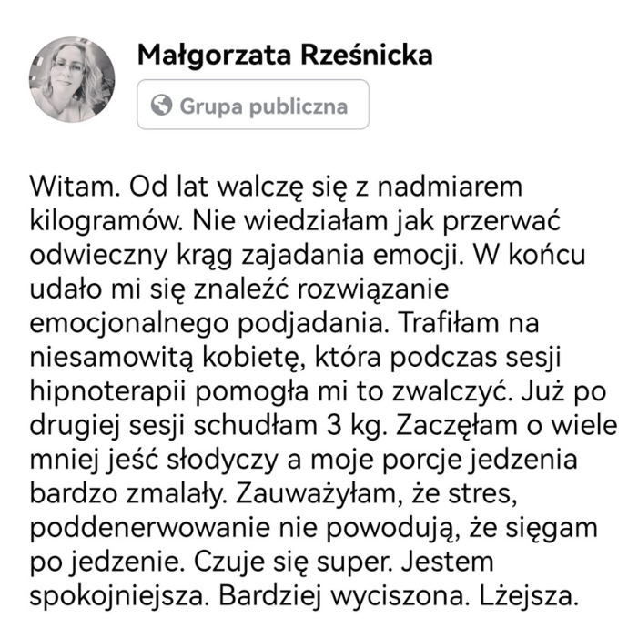 Dzięki hipnoterapii wyszłam ze spirali dieta - obżarstwo - dieta .