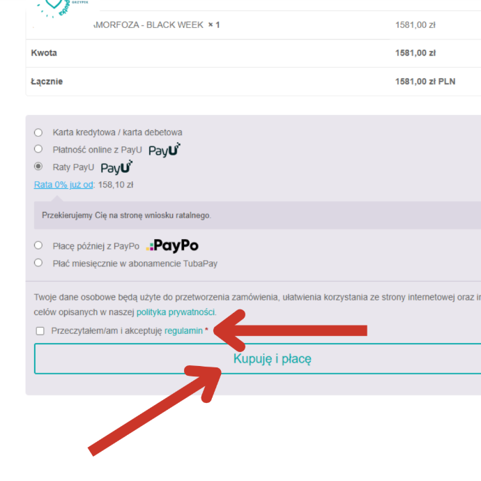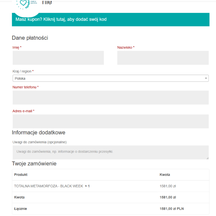 Zostaniesz przekierowana na stronę płatności
