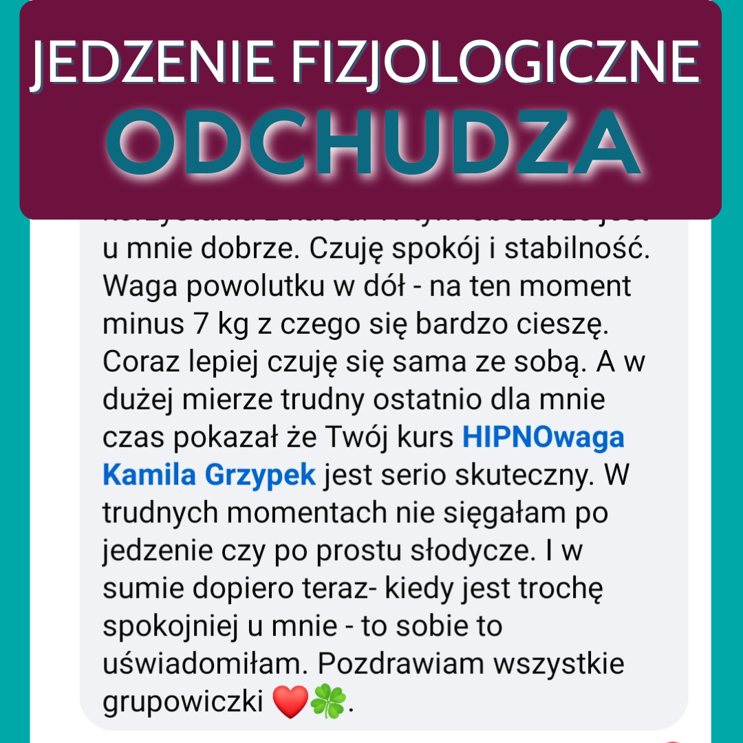 "Pani Kamilo, z jednaj strony wierzę, że może mi pani pomóc (no przecież siedzę w tym gabinecie i wierzę z możliwość zmiany) ale jest też we mnie taka niepewność, że mi się uda (byłam na milionie diet, stosowałam magiczne pigułki i piłam cudowne koktajle /brałam zastrzyki / jestem po operacji bariatrycznej. Miałam nawet noworoczny zryw i ćwiczyłam z Ewą Chodakowską)"