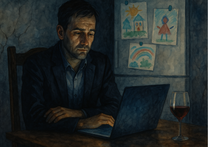 Adam siedział przy stole, obracając w palcach długopis. Przez okno wpadało ostre światło, kładąc się na blacie jak granica, której nikt nie chciał przekroczyć.