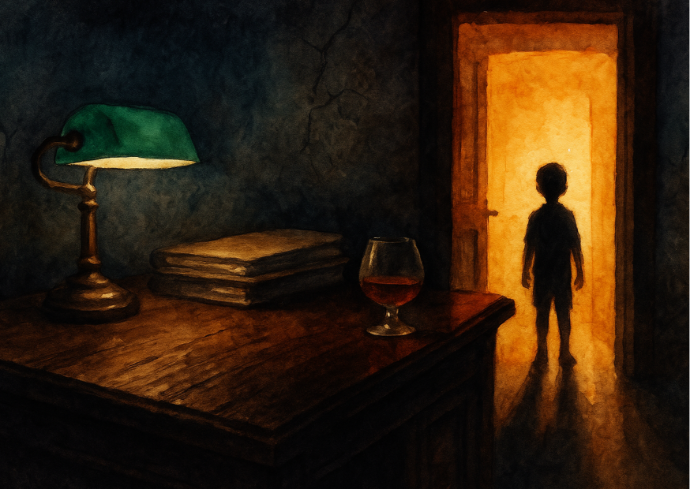 Tam czekało ciężkie, dębowe biurko, sterta papierów, lampka z zielonym kloszem. I szklanka koniaku, którą ojciec nalewał niemal odruchowo, jakby to był element jego służbowego stroju.