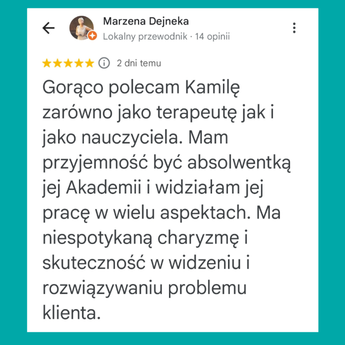 Dzięki Pani Kamili zaczynam inaczej patrzeć na siebie i swoje życie, za co